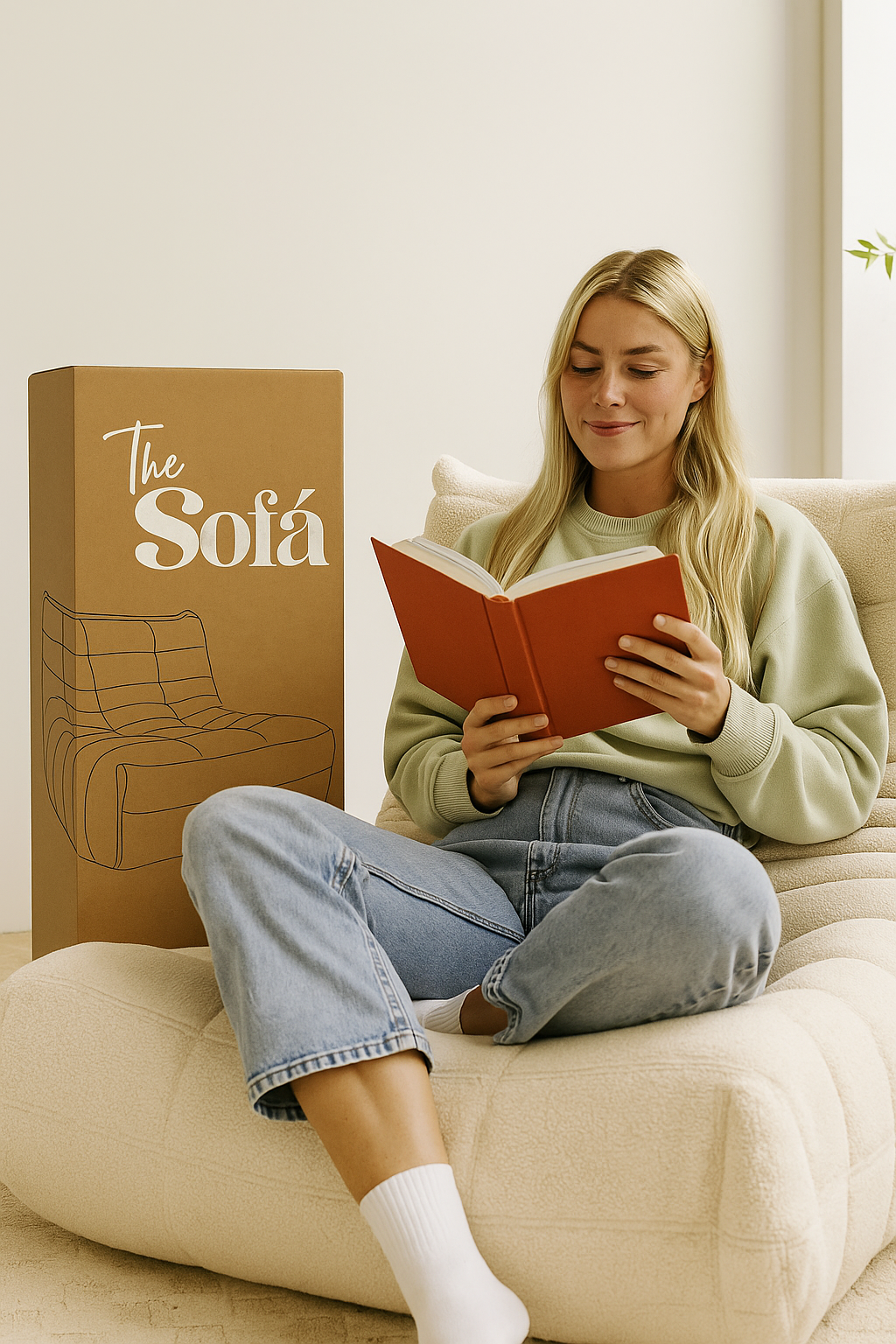 ¡Es súper fácil! Una vez que recibís la caja, la abrís y le quitas el nylon al Sofá (¡con cuidado!). Apenas lo cortes, verás que se empieza a armar solo.